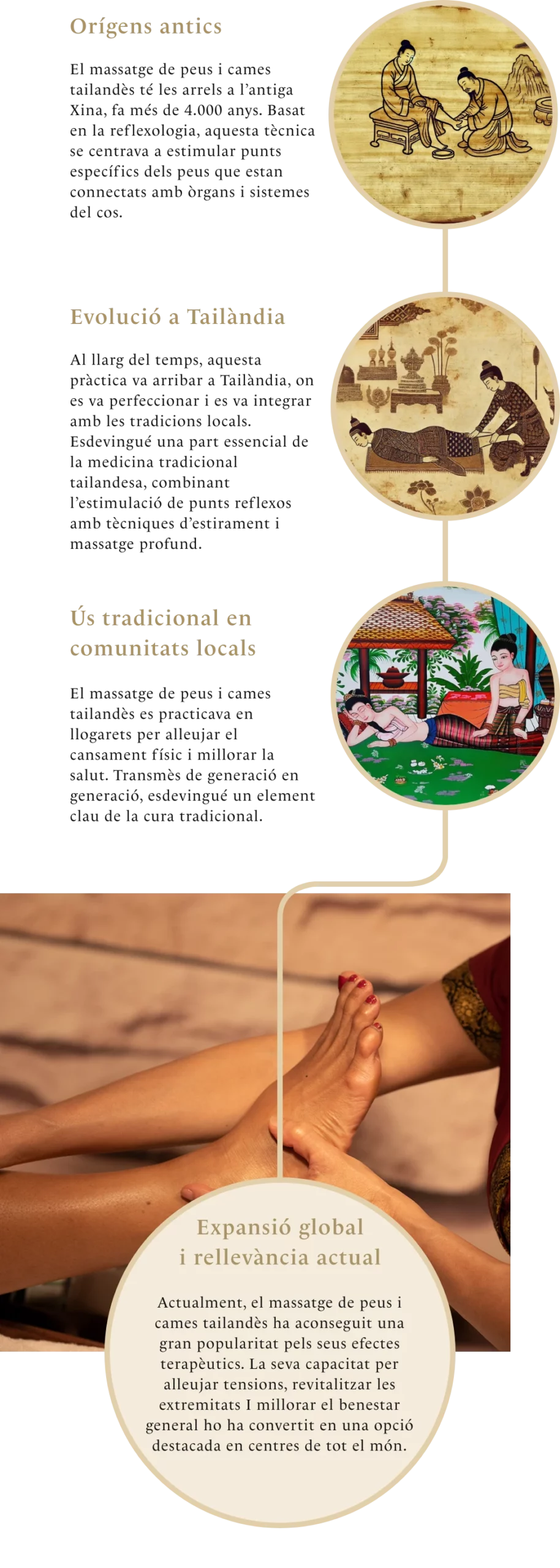 Els massatges de peus i cames són un moment de recuperació. Gràcies a aquesta combinació, podem notar de seguida els seus efectes, alleujant el dolor i el cansament físic d’aquestes parts. Hi ha diferents zones reflectides al cos, però, des dels inicis d’aquesta tècnica a l’antiga Xina —fa més de 4.000 anys—, es treballa amb molta cura la zona reflectida del peu. I és que als peus podem trobar i dibuixar, de forma esquemàtica, el cos íntegrament.